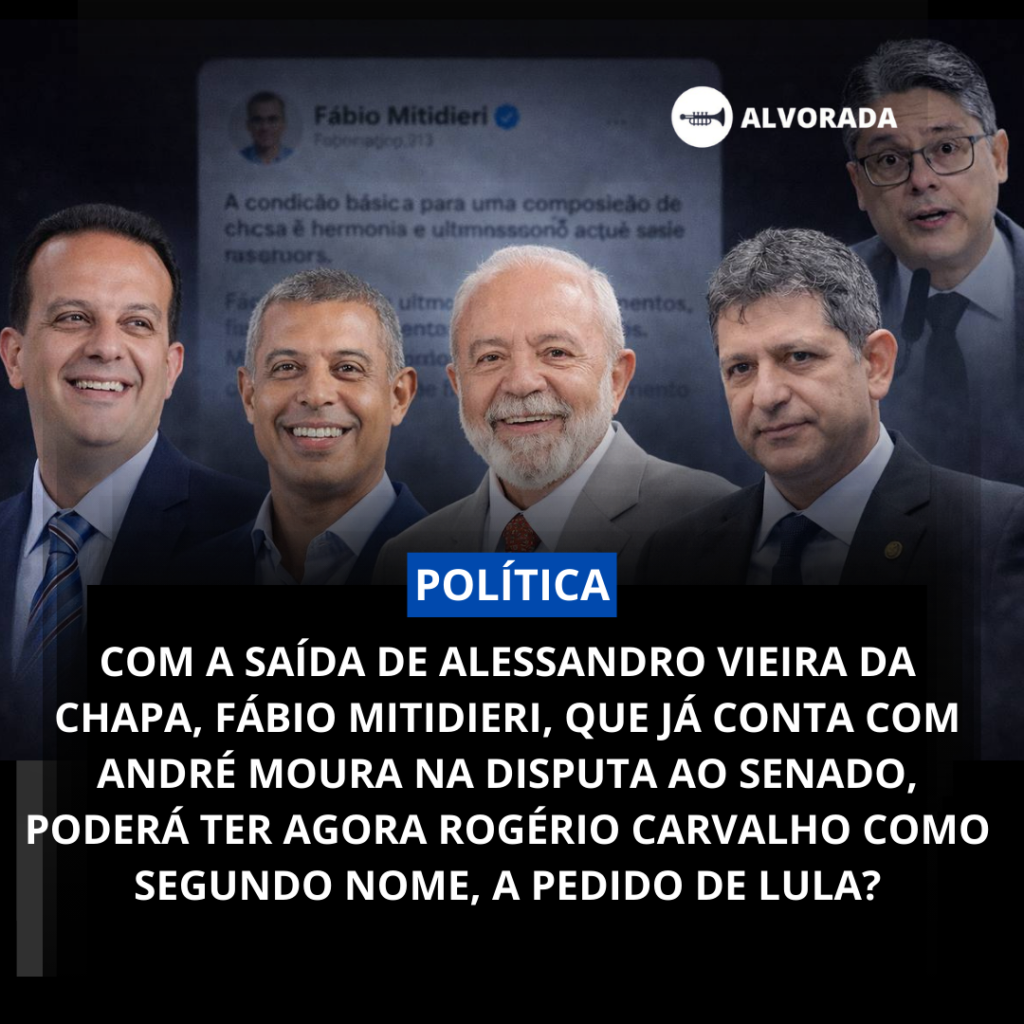 Com a saída de Alessandro Vieira da chapa, Fábio Mitidieri, que já conta com André Moura na disputa ao Senado, poderá ter agora Rogério Carvalho como segundo nome, a pedido de Lula? alvoradageral.com.br / 24/02/2026