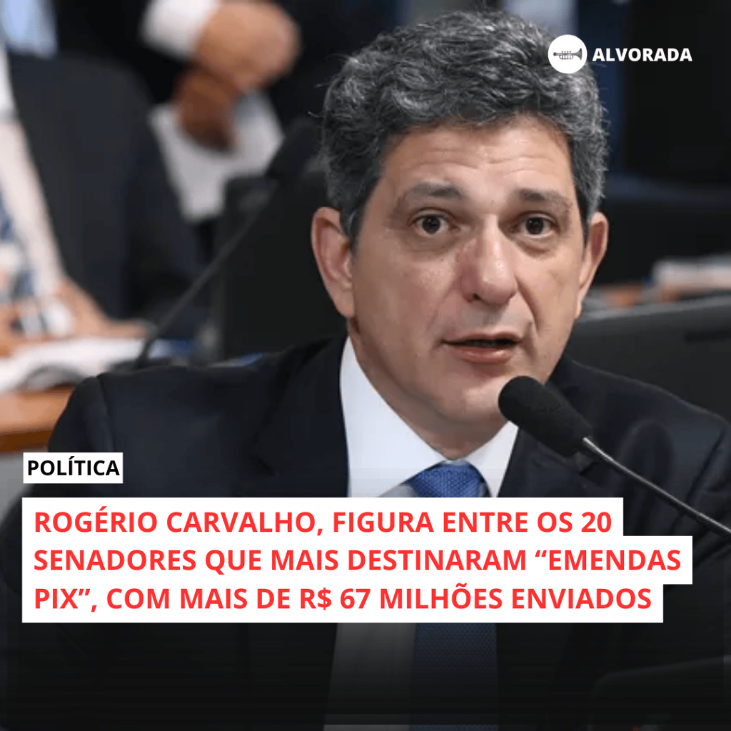 Rogério Carvalho votou a favor do “Orçamento Secreto” em 2021 e, cinco anos depois, figura entre os 20 senadores que mais destinaram “emendas Pix”, com mais de R$ 67 milhões enviados alvoradageral.com.br / 18/03/2026